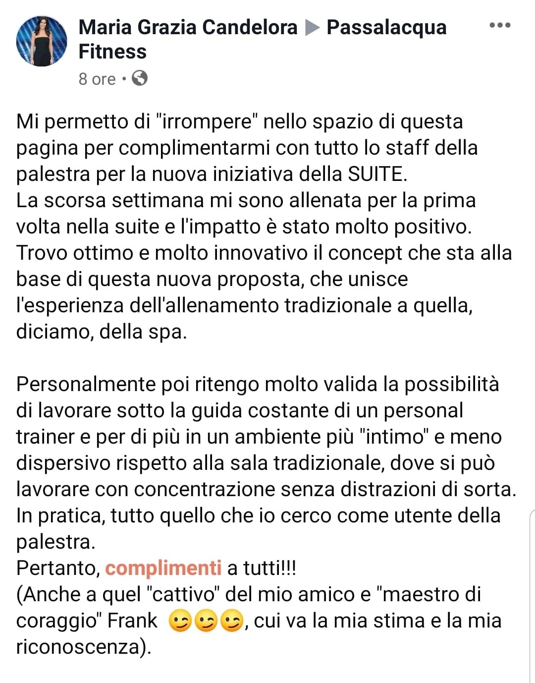 "Ottimo e innovativo il concept che sta alla base di questa proposta ....ritengo molto valida la possibilità di lavorare sotto la guida costante di un trainer e per di più in un ambiente più intimo"